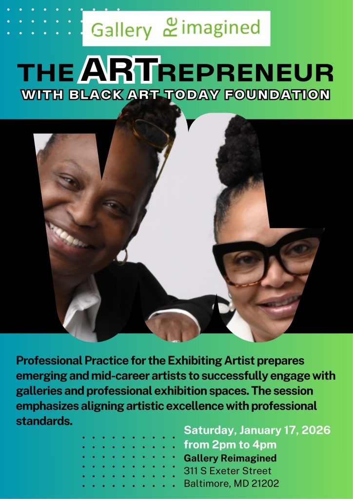 The Professional Practice for the Exhibiting Artist presentation, part of Gallery Reimagined’s Artepreneur Professional Development Series, is led by the Black Art Today Foundation and designed for emerging and mid-career artists. The session focuses on preparing artists to successfully engage with galleries by pairing artistic excellence with professional readiness. Participants gain insight into gallery expectations, curatorial standards, and the importance of clear communication, reliability, and accountability. Topics include delivering installation-ready work on time, aligning with exhibition themes, and maintaining a professional reputation. Artists are guided through understanding consignment agreements, artwork insurance, and best practices for protecting work before delivery. The program also outlines expectations for cohort participation, emphasizing growth, collaboration, and community-centered values. Overall, the presentation promotes risk management, professionalism, and informed decision-making as essential tools for building sustainable artistic careers, reinforcing the core message that while talent opens doors, professionalism keeps them open.